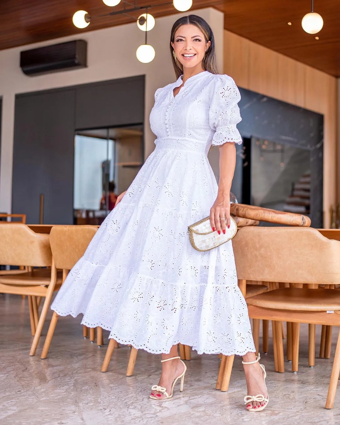 Vestido Lola e um vestido rico em detalhes confeccionado no tecido less de algodão, com forro em helanca de poliamida